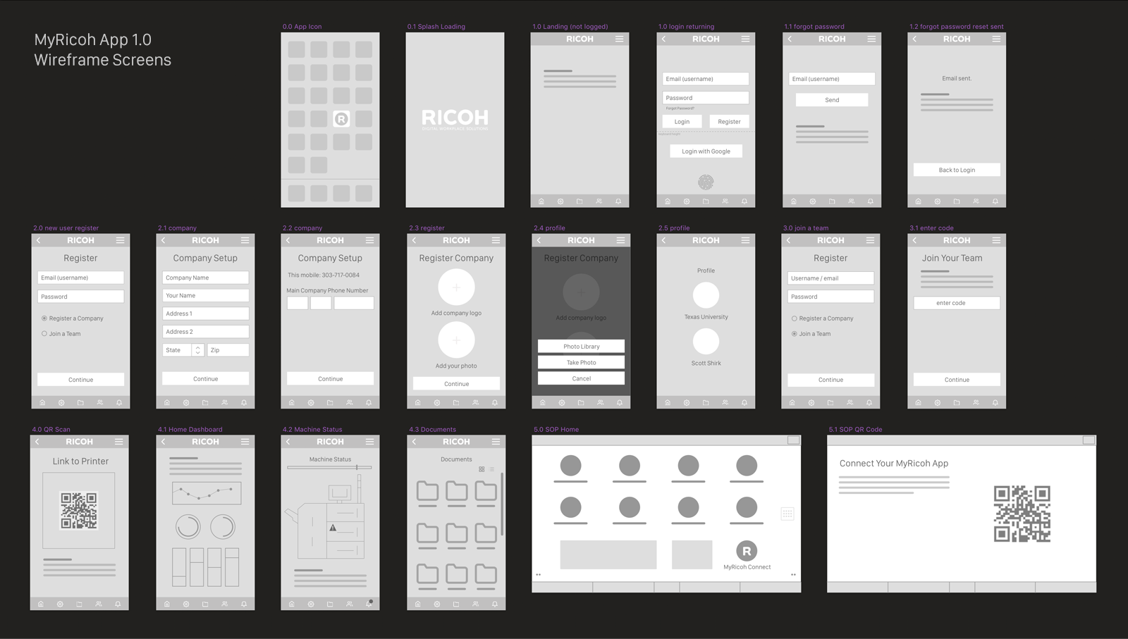 Working closely with Ricoh's Japan SOP (Smart Operation Panel) Team, designing an app that would accompany Ricoh machines. The app would assist users in setup and remote control of the system, as well as connection to documents. Easy pairing with a snap of a QR code on the machine.